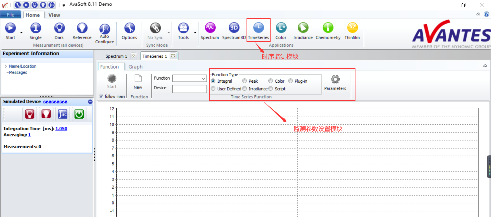 要监测激光波长随时间的变化,只需要在软件中打开 TimeSeries模块,设置希望监测的参,就可以看到激光波长,峰值,强度等设置参数随时间变化的曲线了。软件还能够允许您多窗口同步工作,同时监测多个参数随时间的变化。